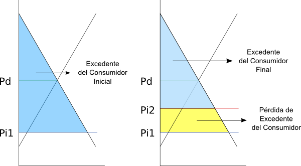 Os consumidores locais estão feridos: o aumento do preço local diminui o excedente do consumidor.