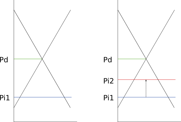 A imposição de uma tarifa só terá efeito se o preço internacional for inferior ao preço de equilíbrio local, como pode ser visto
